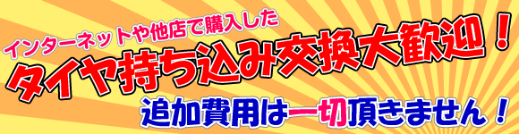 インターネットや量販店で安くタイヤを購入しても、持ち込み交換を断られたり、作業費用が高くお困りの方に朗報です!